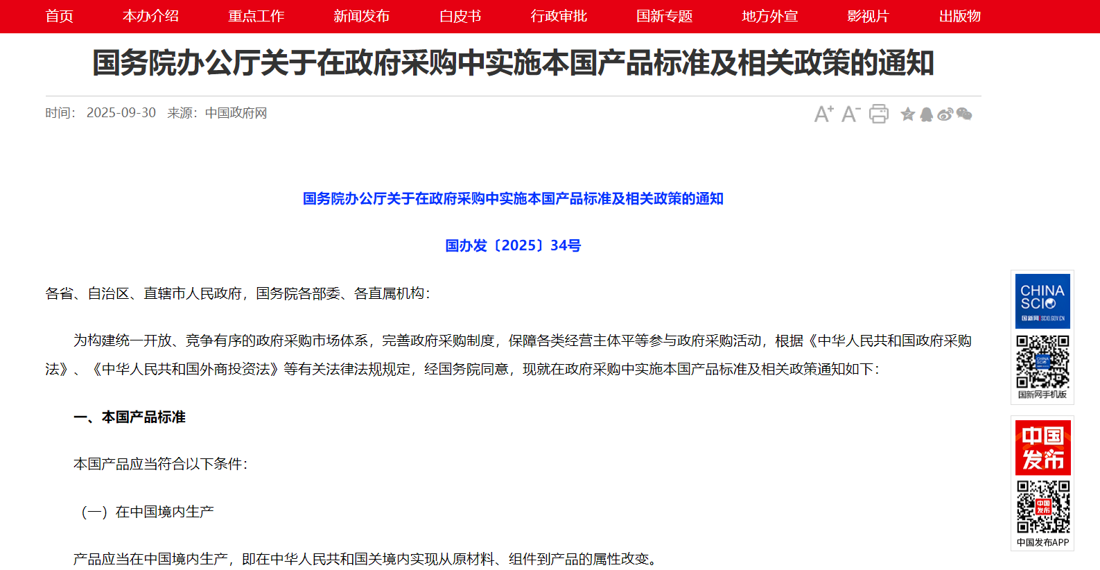 其实在“软件封锁阴影 ” 笼罩之前,国务院办公厅已印发《关于在政府采购中实施本国产品标准及相关政策的通知》,自2026年1月1日起施行。