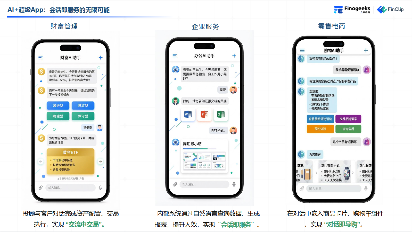 作为凡泰极客推出的智能SDK,FinClip ChatKit 助力企业将传统App,升级为“懂你所想、答你所需”的超级应用。