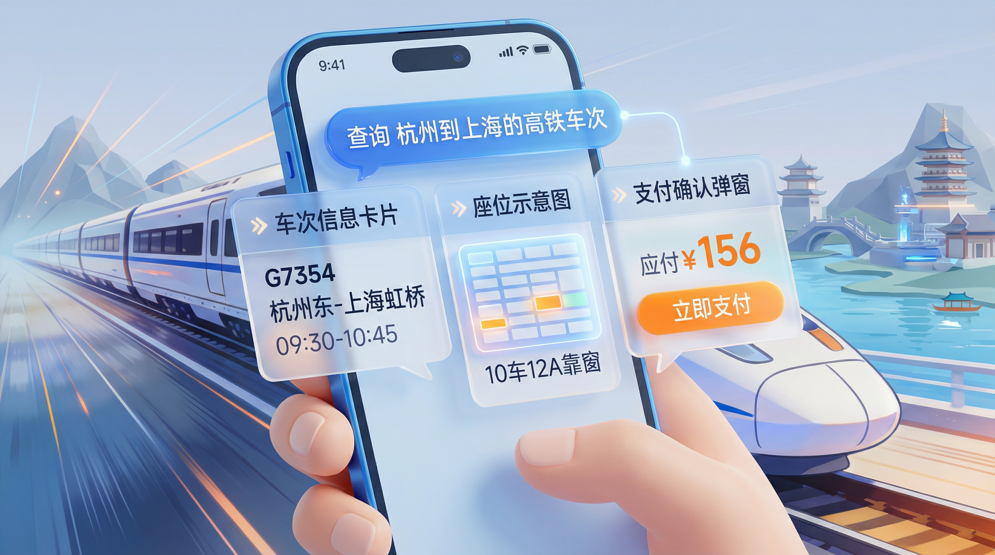 于是,App进入到了3.0阶段,AI+app:App不仅能聚合服务,还能主动理解我的意图,并替我调度、办理好一切,犹如一位贴身的智能顾问和助理。比如,我想买一款中低风险、股债结合的开放式主动管理基金,这样一个搜索条件,大概在任何一个金融app都不会有满意的结果,要么找不到,要么几十个,让你无从下手。但如果跟AI对话,它可以凭借以往跟你交流中对你风险偏好的理解,根据你的风险评级以及机构的合规风控要求,在产品库中找到几款最适合你的产品,如果你满意可以直接确认购买。你甚至可以在银行App里订机票,而且你不再需要分别去查航班、选酒店、订接机车。你或许只需要说一句:“订一张明天下午3点左右到杭州的高铁,靠窗座位。”剩下的,这个“智能伙伴”就能基于对你的了解,去理解“出行”这个复杂意图,自动调用比价、预订、攻略等各种小程序服务,最终把一个完整的、可交互的行程方案推到你面前,甚至可以直接在聊天窗口里完成所有支付确认。