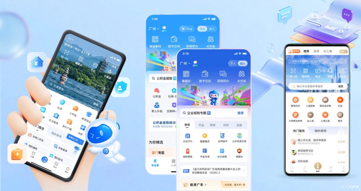 为了打破App1.0的局限,需要对App的架构进行模块化解耦,让App建设跟搭积木一样容易,于是有了App2.0:超级App,本质是平台化。它们借助微应用、小程序等轻量技术,将新的功能模块直接嵌入原生App,无需上架审核就可以随时发布新版。同时,超级App还可以支持生态化,将外部数字世界的第三方服务引入企业内部,服务自己的客户。如“X商银行”App,早已不只是一个查账、转账的金融工具。你点开它的“生活”频道,会发现一个惊人的“小世界”:可以点咖啡外卖、买电影票、预约本地景点门票、甚至缴纳水电煤费用。它通过引入上百个第三方服务小程序,无缝打造了用户“赚钱、管钱、花钱”的完整链条。一个原本每月只用几次的金融工具,因为嵌入了无数个日常消费场景,变成了用户几乎每天都会打开看看的“生活管家”。这种策略,聪明地把低频的金融服务,藏在了高频的生活服务背后,把自己变成了用户离不开的“高频入口”,同时积累了大量的用户行为数据。事实上,超级App早已在数字政务领域大放异彩,各省市的政务App如“随申办”、“浙里办”、“粤省事”等等,其起步时的核心任务就是把政务办事大厅搬到网上,功能精准但略显枯燥。但现在呢?以上海的“随申办”为例,它已经进化成上海市民的“数字百宝箱”。除了办事,你还能用它查询实时公交、预约全市的体育场馆、查看景区人流热力图、亮证入住酒店。它把政府服务、城市运行和市民生活巧妙地融为一体。