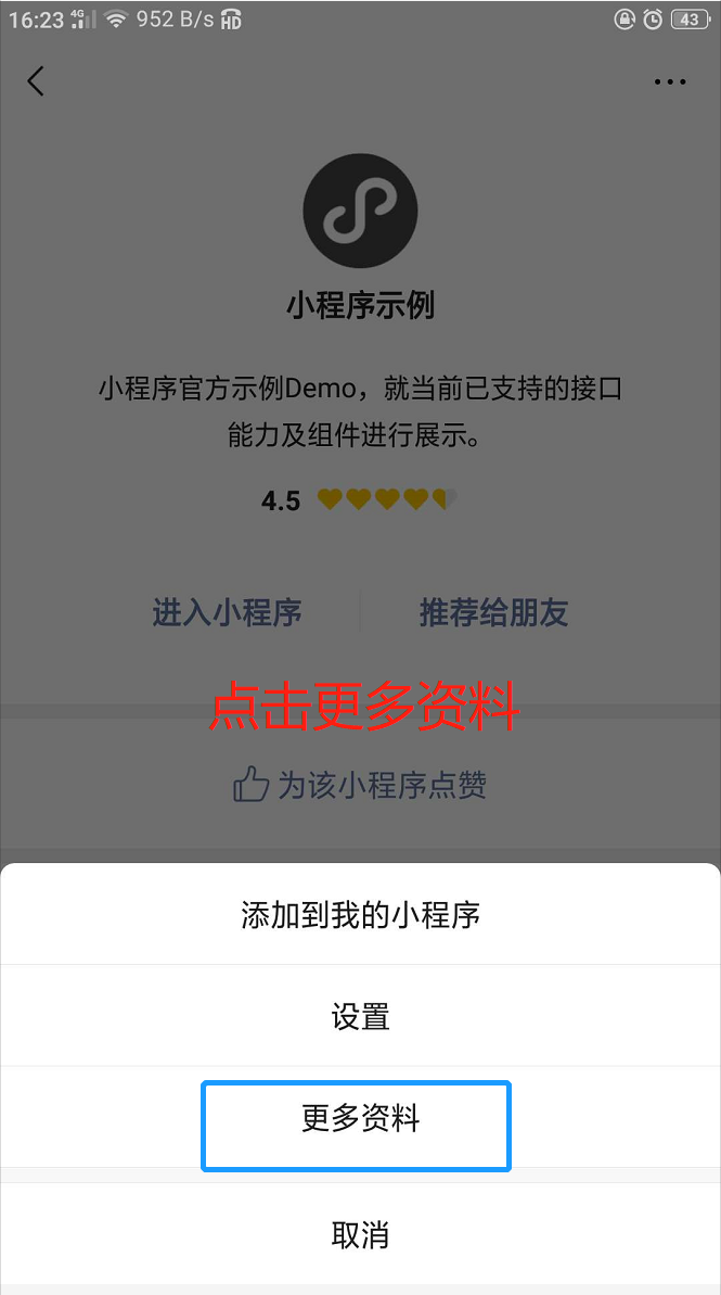 当点击小程序更多菜单中的“转发”时,会调用IAppletHandler实例的shareAppMessage方法,shareAppMessage方法中有小程序信息、小程序页面截图等参数,获取到小程序相关参数之后,便可调用第三方分享SDK实现分享。
