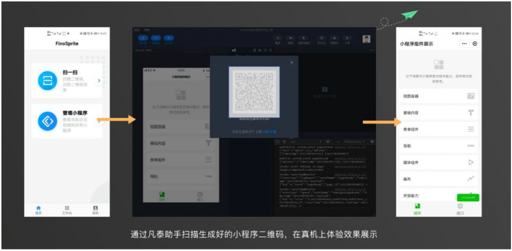 从实际的使用体验来看 FinClip IDE 目前已支持二维码登录、真机预览、修改预览设置、指定基础库版本,本地导入基础库、优化userAgent展示方式,同时针对插件管理部分,可以直接将官方封装好的插件(如虚拟键盘,单向视频)拖拽至小程序中进行开发。