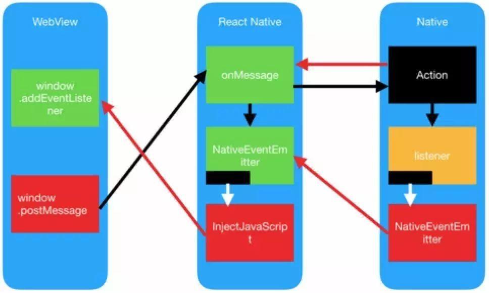 先监听从 React Native 发过来的内容,当接收到内容将数据以广播的形式发出。然后,再通过 PostMessage 告诉 React Naitve,我们需要在调用哪个 action,并传递相应的参数。
