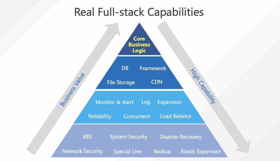 我先明确一下真全栈的定义:如何判断一个工程师是真全栈工程师?当公司有了一堆产品功能需求,招了一个程序员张全占,如果他能从 0 到 1 把需求做成产品,那才叫真全栈。如果张全占完成了前端功能开发、后端开发以及数据库开发,实现了所有的需求功能,并且部署到对应的服务上,就完事了,那么问题也就来了:服务挂了谁来重启?环境稳定性谁来做?日志把磁盘写满了谁来清理?定时任务怎么搞?产品突然火爆了,流量一夜间突然扩大了十几倍的时候(产品经理狂喜中),谁负责扩容?这些问题虽然不是核心业务需求,却是每一个线上产品都必须考虑的东西,否则只能称为功能集合,不能称之为产品。