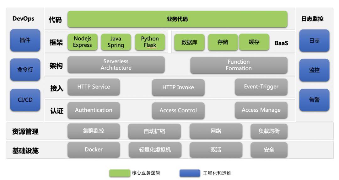这里我们不展开讲 Serverless 架构的底层实现细节。只需要了解一点:Serverless 底层架构做的事情越多,业务层面需要关注的架构和运维工作就越少,因为做的工作少了,所以交付的时间就更快了。